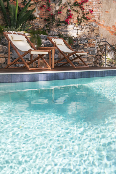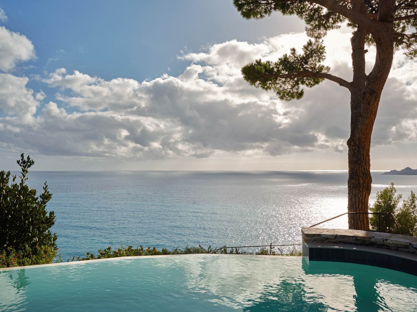 The pool at Villa Amore is a place of contemplation and wellbeing. Its infinity edge blends seamlessly with the blue of the Gulf, creating a continuous dialogue between water, light and landscape. Sun loungers, an outdoor shower and a curated selection of beach towels complete the setting, inviting guests to enjoy the Ligurian sun in total relaxation.